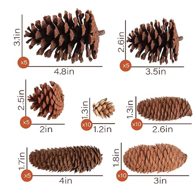 Various sizes from 1" to 4" long. Perfect for filling bowls, scattering on mantels, or creating centerpieces. Naturally sourced from sustainable forests.