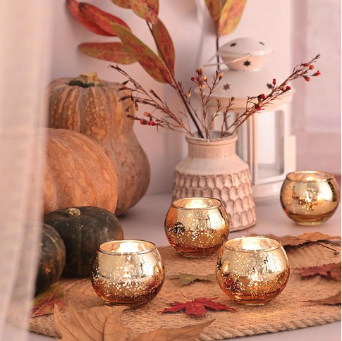 Volens Round Gold Votive Candle Holders, Mercury Glass Candle Holder Set of 12