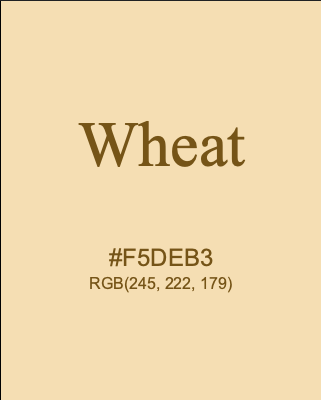 - Wheat (#F5DEB3) - Soft, elegant neutral